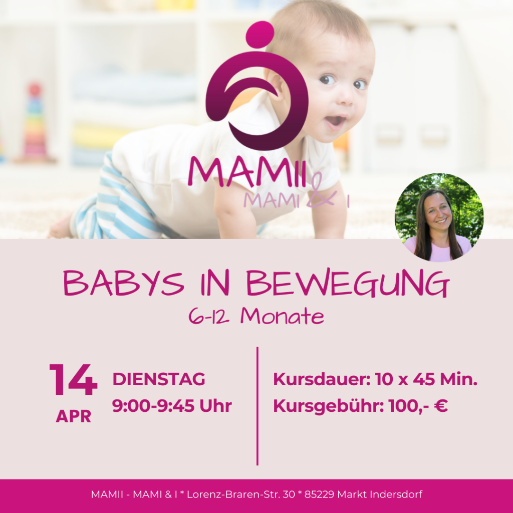 Dieser Kurs ist ein liebevoll gestalteter Babykurs, den wir bei MAMII mit viel Herz, Erfahrung und Fachwissen anbieten. Im Mittelpunkt steht die ganzheitliche Förderung Deines Babys – durch altersgerechte Bewegung, spielerisches Erkunden und intensive Eltern-Kind-Zeit.