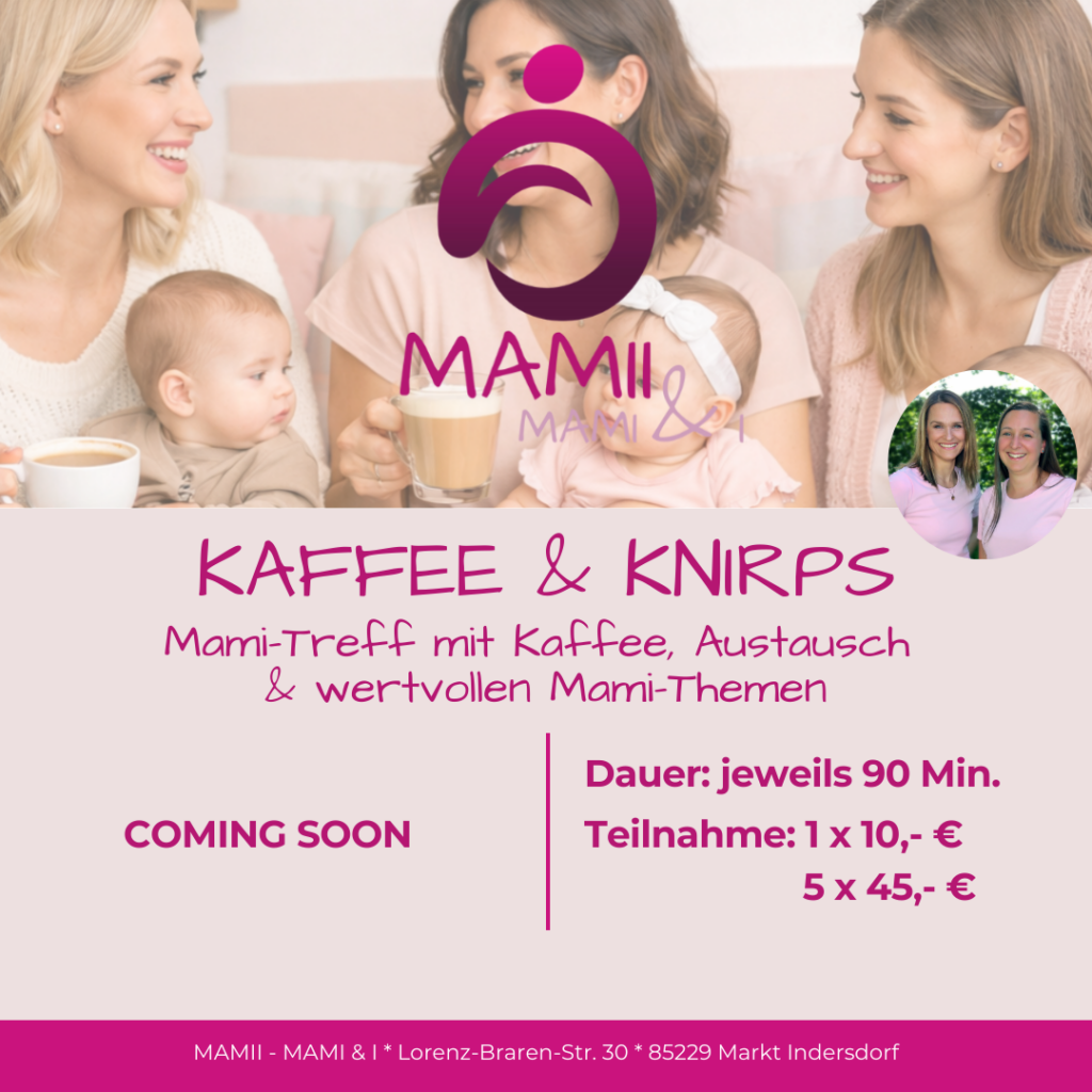 KAFFEE & KNIRPS ist ein liebevoller Mami-Treff für Mamis mit Baby – mitten im Alltag, ohne Druck und ohne Erwartungen. Bei einer entspannten Tasse Kaffee triffst Du andere Mamis, kannst Dich austauschen, neue Impulse mitnehmen und einfach sein. Dein Baby ist dabei herzlich willkommen – mit allem, was es gerade braucht.